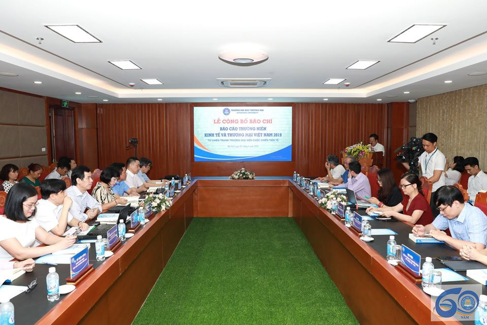 8h00 ngày 03/6/2020, tại phòng Hội thảo số 1 tầng 6 nhà F, Trường Đại học Thương mại tổ chức buổi lễ công bố báo chí Báo cáo thường niên Kinh tế và Thương mại Việt Nam 2019: “Từ chiến tranh Thương mại đến cuộc chiến tiền tệ”.