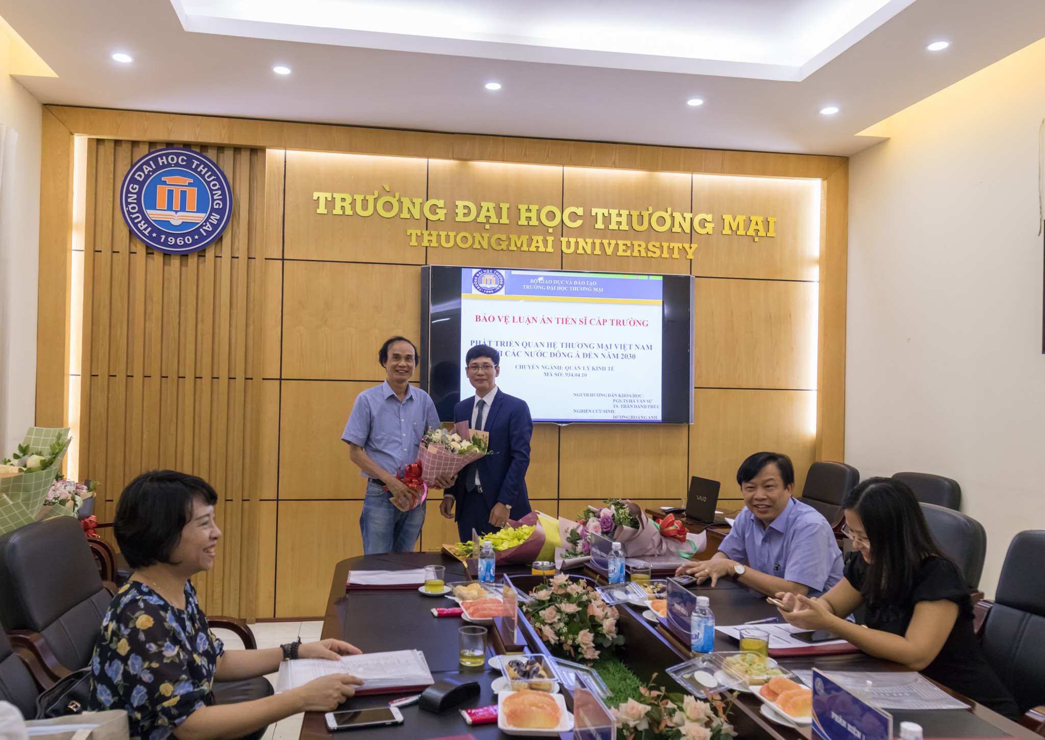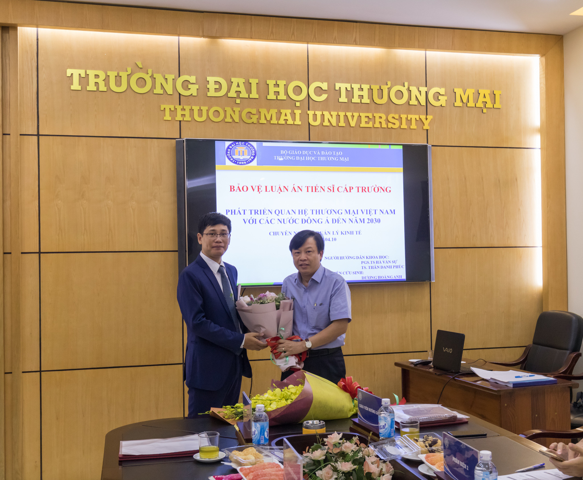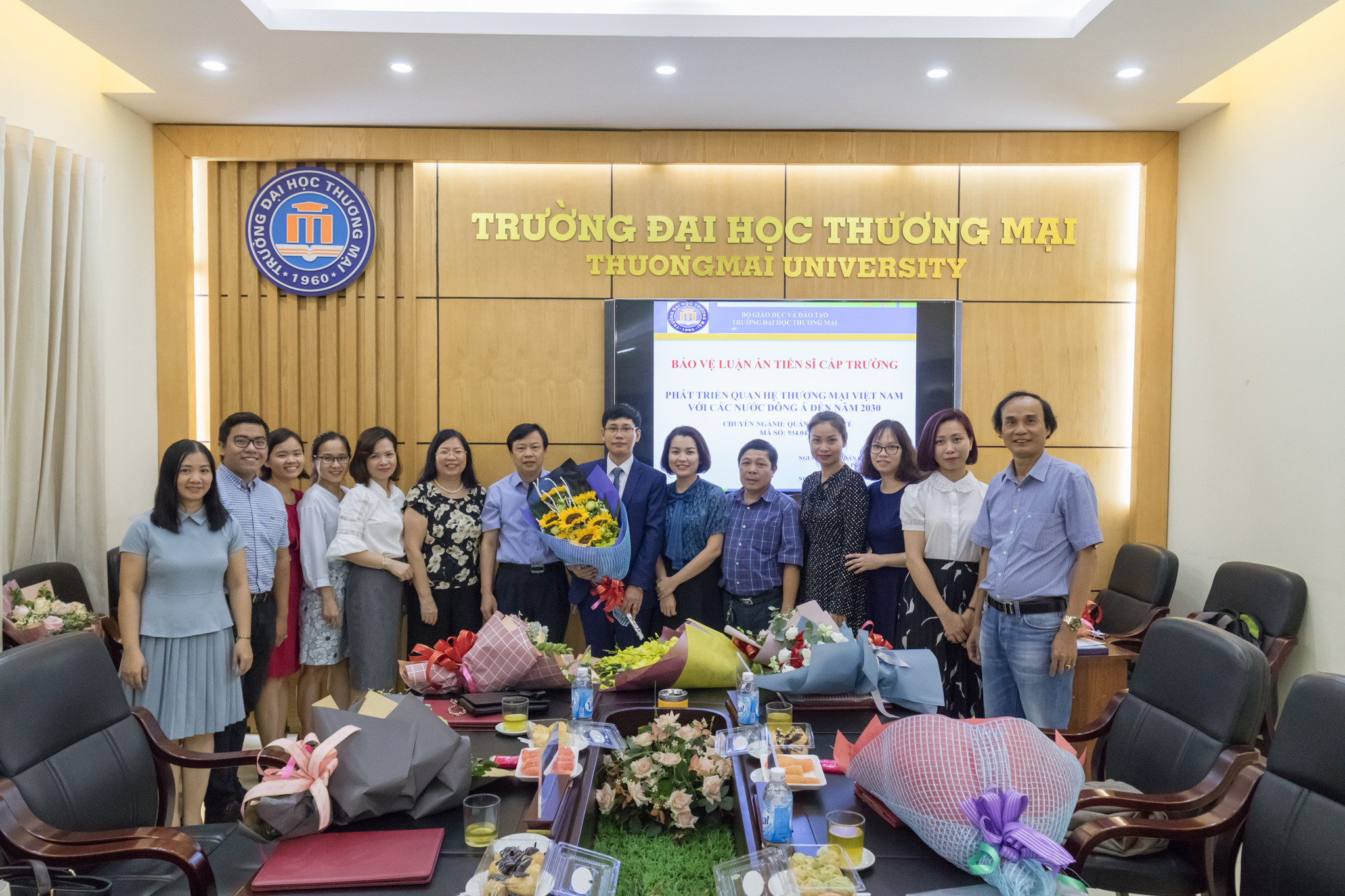 Ngày 08/10/2019, tại Phòng họp số 2 nhà I, Trường ĐH Thương mại đã tổ chức Lễ bảo vệ luận án tiến sĩ cho nghiên cứu sinh Dương Hoàng Anh, chuyên ngành Quản lý kinh tế (mã số 934.04.10), đề tài luận án “Phát triển quan hệ thương mại Việt Nam với các nước Đông Á đến năm 2030” với sự hướng dẫn khoa học của PGS.TS. Hà Văn Sự và TS. Thân Danh Phúc