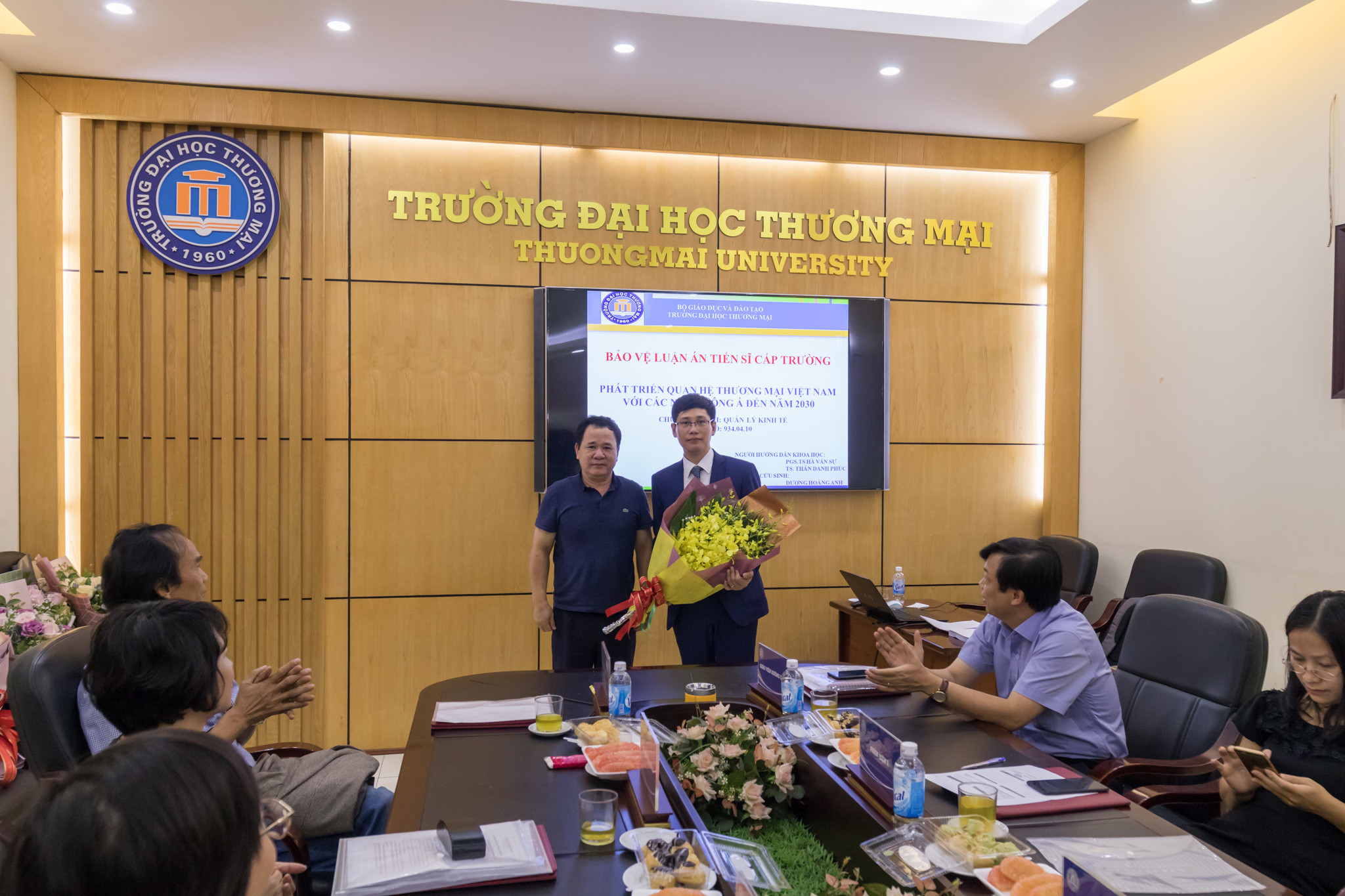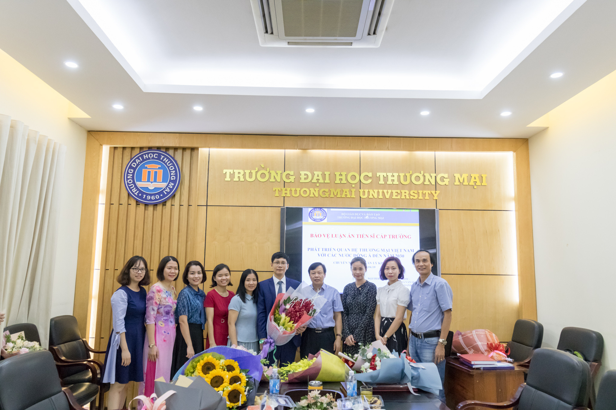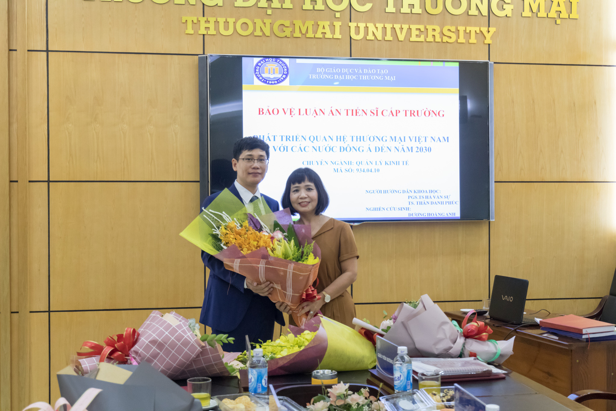 Ngày 08/10/2019, tại Phòng họp số 2 nhà I, Trường ĐH Thương mại đã tổ chức Lễ bảo vệ luận án tiến sĩ cho nghiên cứu sinh Dương Hoàng Anh, chuyên ngành Quản lý kinh tế (mã số 934.04.10), đề tài luận án “Phát triển quan hệ thương mại Việt Nam với các nước Đông Á đến năm 2030” với sự hướng dẫn khoa học của PGS.TS. Hà Văn Sự và TS. Thân Danh Phúc