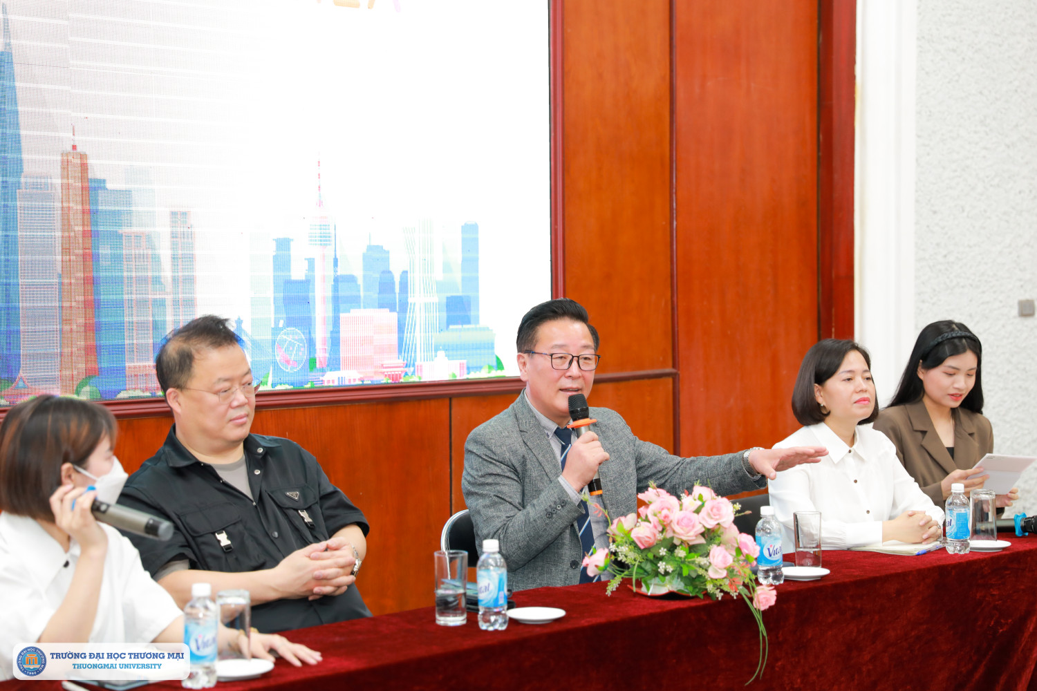 Tại buổi tọa đàm, Ông Choi Kwang, Giám đốc Marketing Công ty Cổ phần Truyền thông VIC Việt – Hàn đã có những chia sẻ hấp dẫn, thiết thực và chi tiết, giúp cho sinh viên Trường Đại học Thương mại có cái nhìn thực tế về làn sóng đầu tư của các doanh nghiệp Hàn Quốc đến Việt Nam, từ đó có thể chủ động trong việc chuẩn bị các kỹ năng, kiến thức cần thiết kịp thời nắm bắt những cơ hội ứng tuyển và làm việc tại các doanh nghiệp Hàn Quốc.