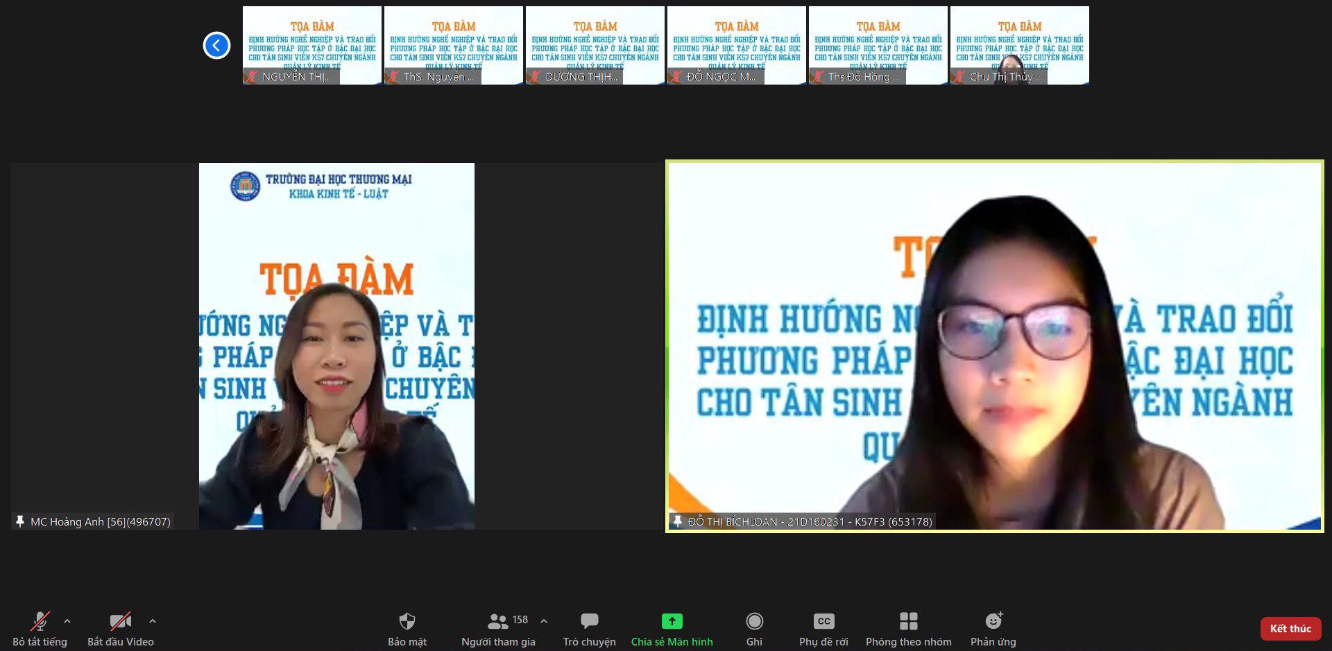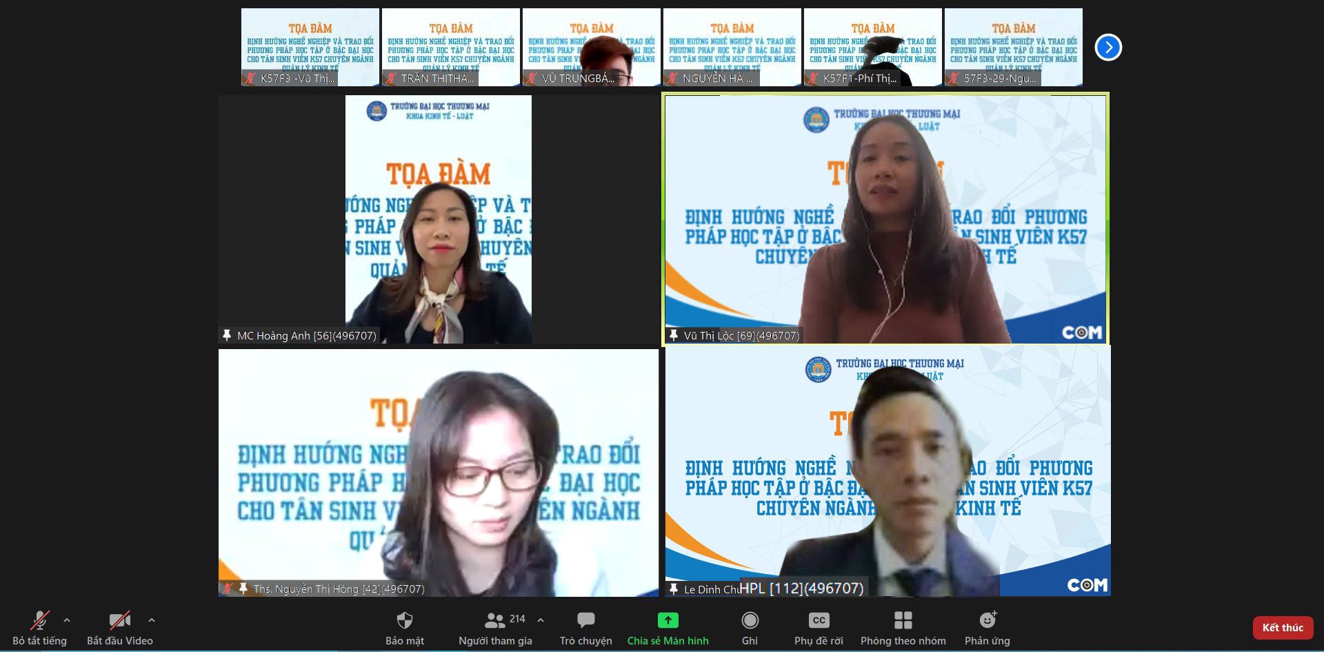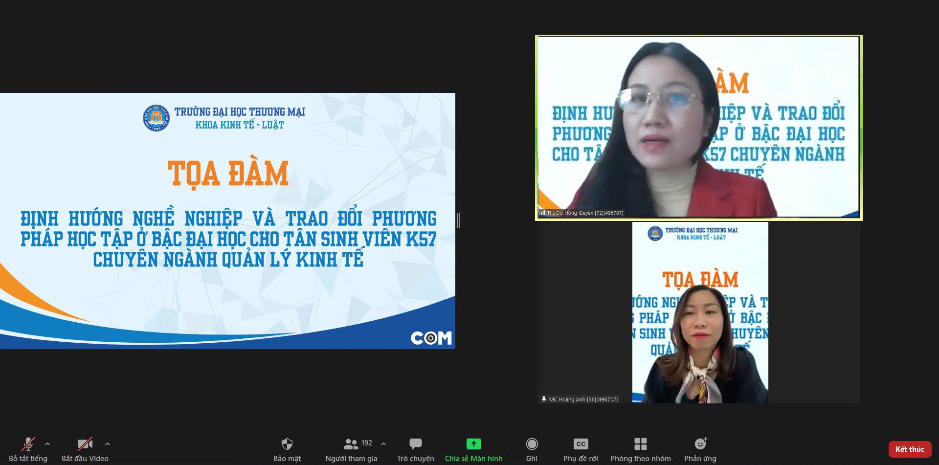 9h sáng ngày 23/10/2021, trên nền tảng trực tuyến trans, đã diễn ra chương trình tọa đàm “Định hướng nghề nghiệp và trao đổi phương pháp học tập ở bậc đại học đối với tân sinh viên K57 chuyên ngành quản lý kinh tế”. Đây là chương trình đặc biệt trong chuỗi sự kiện “Chào tân sinh viên K57” của Khoa Kinh tế - Luật.